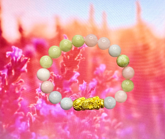 Rose Quartz Bracelet with 18K Gold-Plated Pi Yao